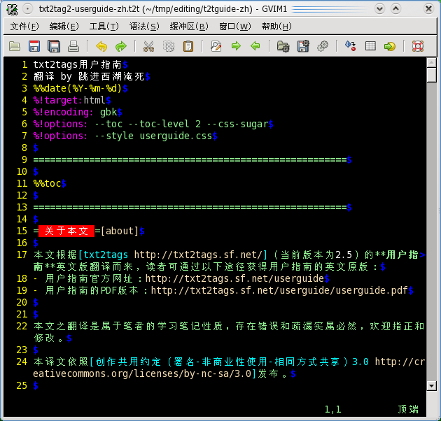 本文根据txt2tags(当前版本为2.5)的用户指南英文版翻译而来,读者可通过以下途径获得用户指南的英文原版: